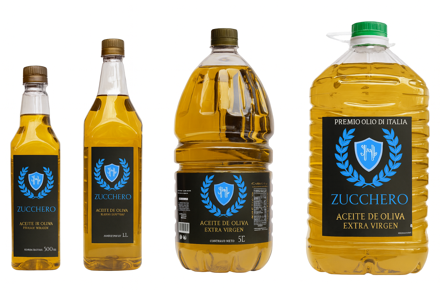 Aceite de Oliva Extra Virgen de primera prensada en frío. Medidas: 500 cm³, 1000 cm³, 3000 cm³ y 5000 cm³. Venta Mayorista, envíos a todo el país.